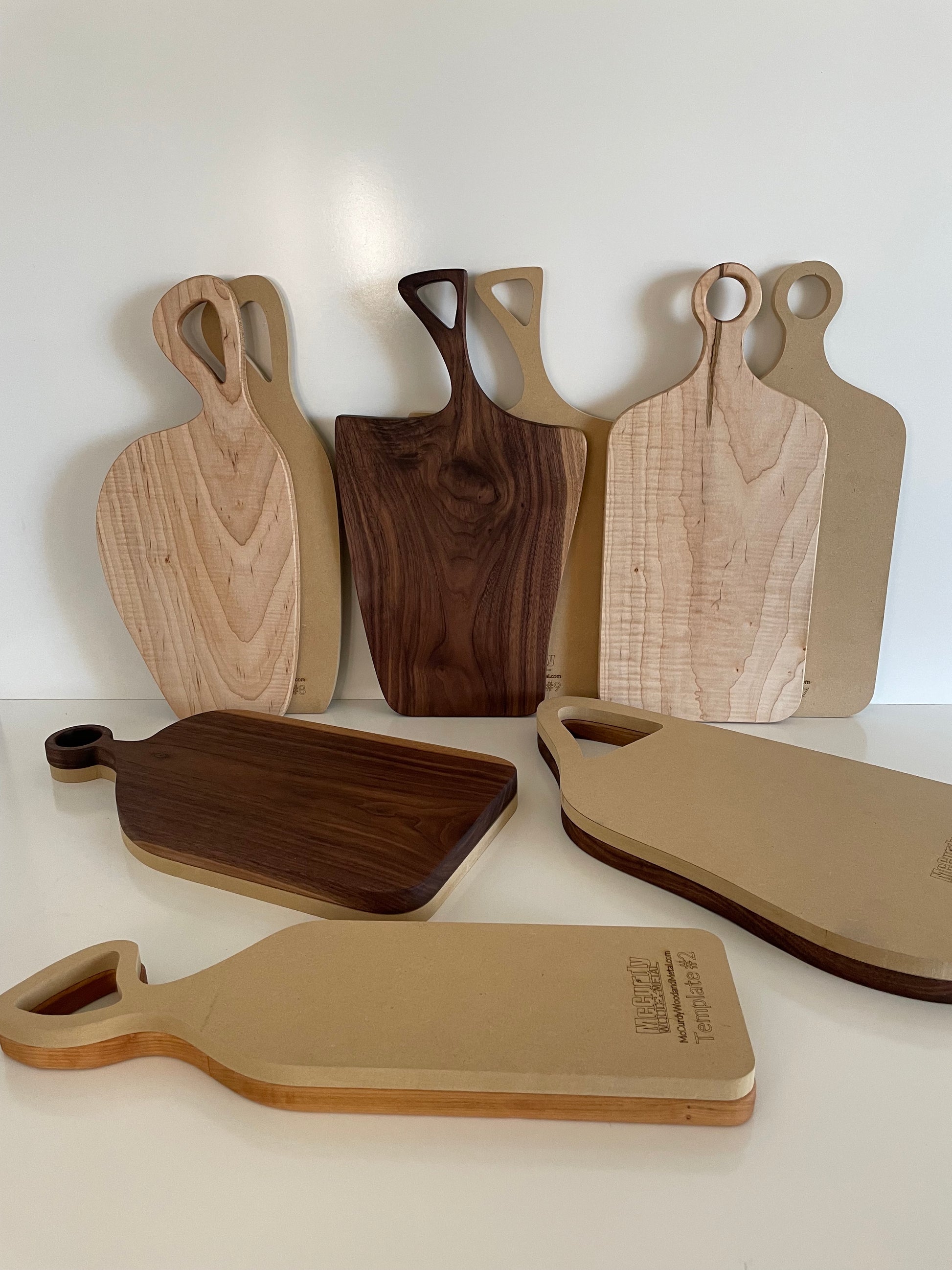 Finished maple and walnut boards in the first picture are not included. This listing is for one template of your choice.