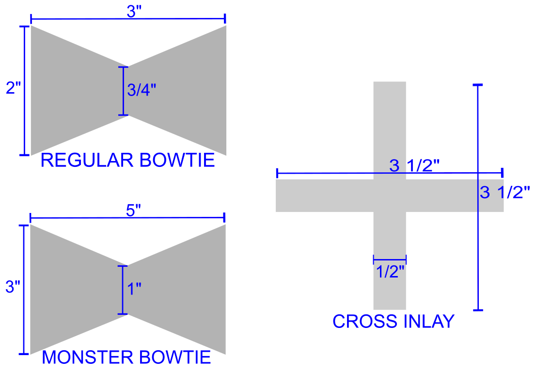 Add a look like no other to your woodworking project with a stainless steel bowtie inlay. The bowtie is CNC cut out of stainless steel with a light brushed style finish. A heavy brush look can be added with fine grit sand paper or a Scotchbrite pad, or it can be polished for a mirror finish.